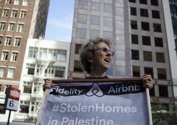 Barred from her homeland, a Palestinian woman marches against Airbnb