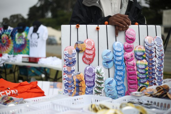Vendor displays buttons during Bernie Sanders Rally at Crissy Field on June 6, 2016. Photo by Kelsey Lannin