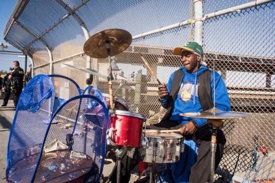 Michael Davis, street drummer makes a living playing outside the Oracle Arena before the Golden State Warriors game. Photo by Gabriela Reni/Bay News Rising