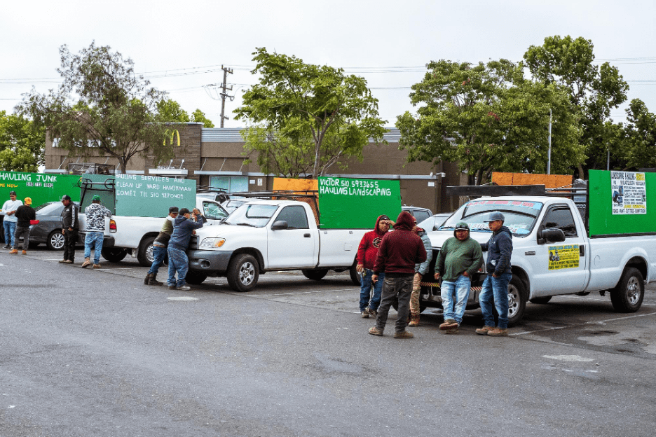 In California it is not illegal to hire a day laborer. Legally, the workers are independent contractors. Many of the men working here are undocumented, however, and it is illegal to knowingly hire someone unauthorized to work in the United States. Some employers take advantage of the vulnerability of undocumented people, who often fear the consequences of making a complaint if they’re not paid. But with or without legal immigration status, workers have the legal right to be paid, and day laborers cannot be denied pay because they are undocumented.