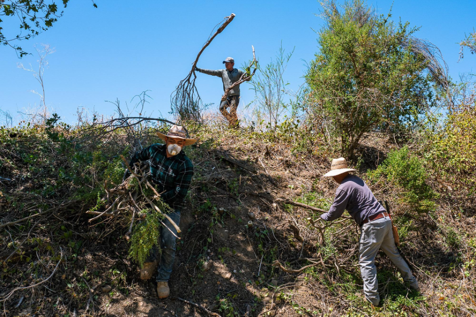 Through the Trabajadores de la Tierra (Land Workers) program, Lopez gets environmental restoration jobs. Workers are hired for their knowledge of land management and train others on best practices. Their most recent job was in Santa Rosa, working with Russian River Keepers to remove overgrown underbrush and invasive plants to prevent deadly fires.
